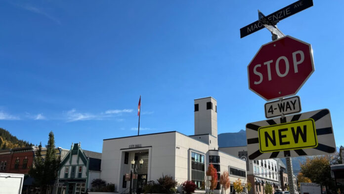 The City of Revelstoke is asking the public to look both ways when approaching their new four-way stop near city hall.